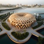 این ساختمان به شکل یک کره نیمهگرد با پوششی شبیه به مقوا یا چوبهای منحنی طراحی شده است که به صورت موجمانند و همچون پوستهای از گیلاس بر روی آب قرار گرفته است. این ساختار، از نظر بصری شبیه به یک موجود زنده در طبیعت است و حسی از هماهنگی با محیط ایجاد میکند.